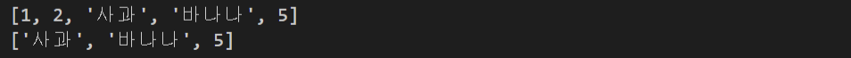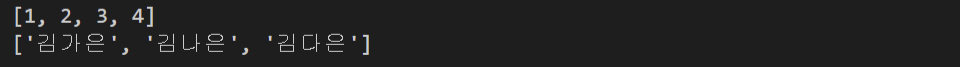 리스트명 = [요소1, 요소2, 요소3, ...]