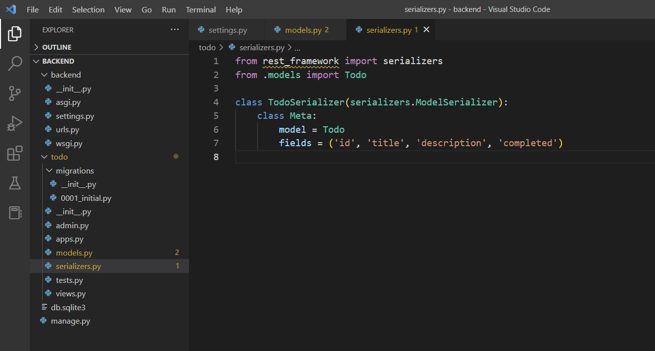 serializers.py: to convert the model instances to JSON so that the frontend can work with the received data easily