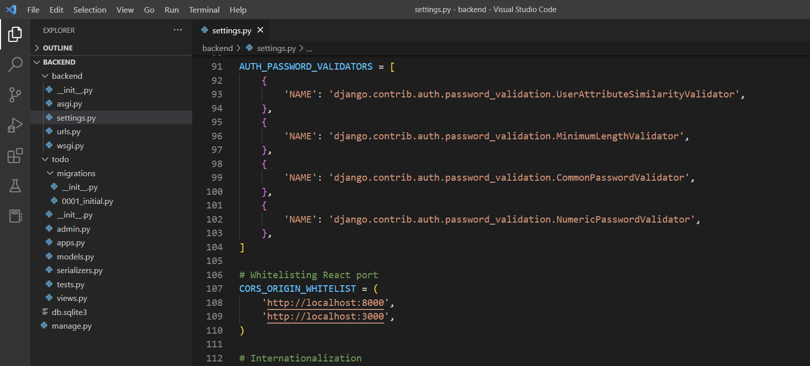 Whitelisting React port: let frontend of the application to interact with the API in django